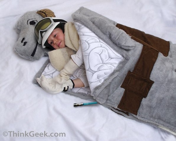 The brilliant minds over at Think Geek cooked up this Tauntaun bag, complete with light saber zipper, how else were you going to get inside?
