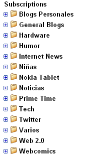 image Un detalle mas es que agrupar por folders permite también usar mas efectivamente la opción de Mostrar Actualizados, con lo que podemos filtrar solo los feeds que tengan post nuevos o no leídos. Esto también simplifica mucho la forma en la que se presenta. A continuación les dejo una muestra de la diferencia entre usarlo o no :
