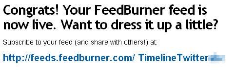 La razón de toda esta solución es que por alguna razón Twitter usa para los RSS de las timelines un método de autentificación que Google Reader no soporta. Nadie sabe por qué no lo han cambiado y es algo que mucha gente les ha criticado. Feedburner lo que hace es crear un feed que ya no requiere esa autentificación y que Google Reader puede usar sin problemas. Por eso nos pide el usuario y el password – para poder “abrir” el feed y crear uno nuevo limpio.