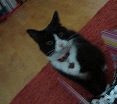 Es poco lo que puedo decir sin caer en el delirio del fanboy, pero baste decir que es toda una dama y que realmente merece toda la fama y reconocimiento que tiene. Nos enteramos de sus humildes orígenes y del largo camino que la ha llevado a ser una tuitera de renombre. En el momento que llegamos dejó el teclado y el ratón (ejem) y nos dedico un buen rato. Al principio se mostró mas que sociable y entabló particularmente buena relación con Tazy, pero no por ser excelente tuitera deja de ser gato, de manera que eventualmente se engentó y se fué dejándonos con un excelente recuerdo y algo de pelo en la ropa. Asumo que es el equivalente de un autógrafo para ella.