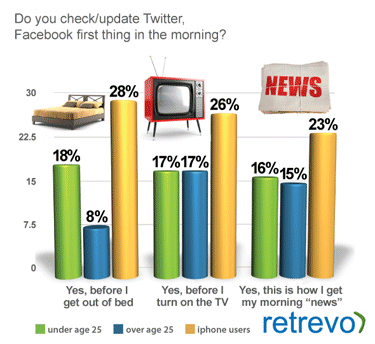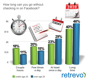Un sitio llamado Retrovo, que se especializa en estadísticas relacionadas con el uso de dispositivos móviles y tecnología publicó hace unos días las siguientes estadísticas respecto al uso de Facebook y Twitter. A ver si algo de esto les parece familiar: