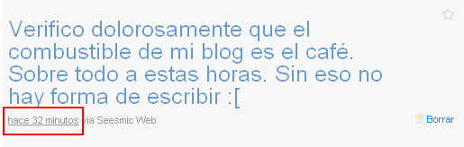 Verifico dolorosamente que el combustible de mi blog es el café. Sobre todo a estas horas. Sin eso no hay forma de escribir :[