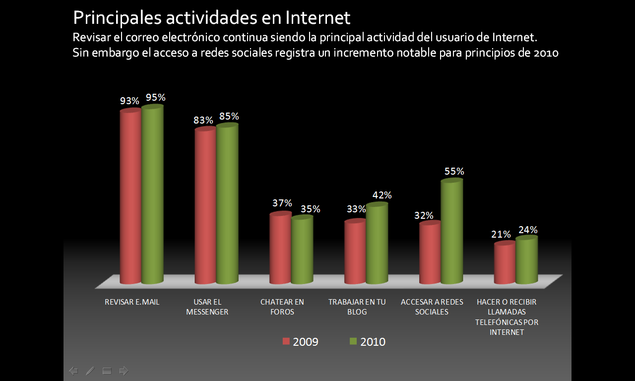El estudio contiene una gran cantidad de información que resulta relevante para poder entender como se está usando y percibiendo Internet en México. Noten por ejemplo en qué actividades ha habido un mayor aumento con respecto al año pasado 🙂