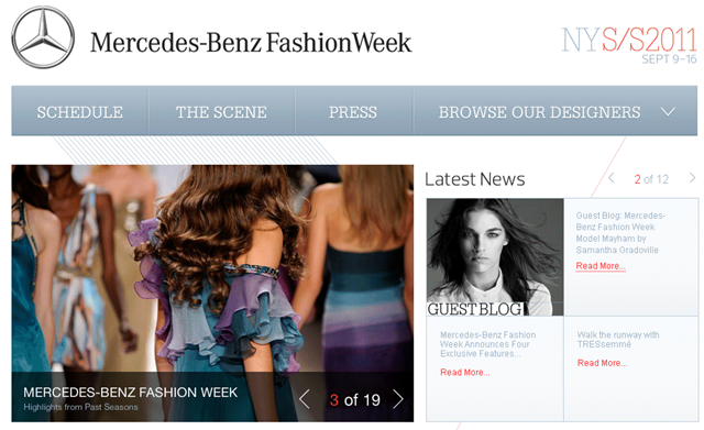 Sitio Oficial de la Mercedes-Benz Fashion Week: Calendarios, programas, bios de los diseñadores, fotos exclusivas y livestreams. De los mejores lugares para seguir todo el evento con detalle.