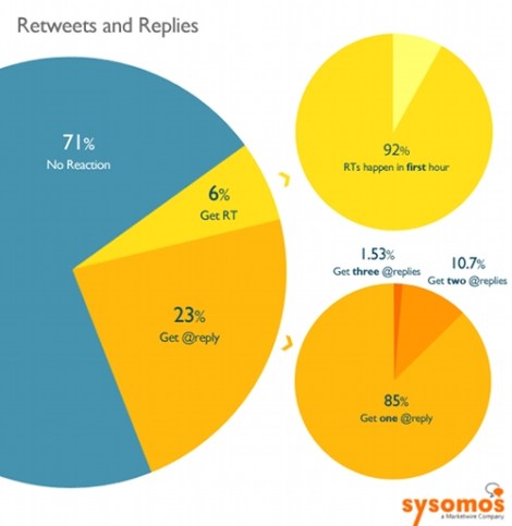 Siendo así, la ya comentada compañía de investigación Sysomos, publicó un reporte que señala una de las características mas importantes de Twitter. Tras estudiar 1,200 millones de tweets, he aqui sus hallazgos. Para empezar, y quizá lo mas importante: