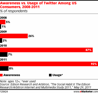 92% de las personas han escuchado hablar de Twitter, pero solo 8% lo han usado.