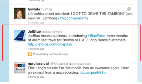 Ayer oficialmente Twitter anunció que lanza su esquema de publicidad directamente en nuestro timeline: Promoted Tweets o Tweets Promovidos.