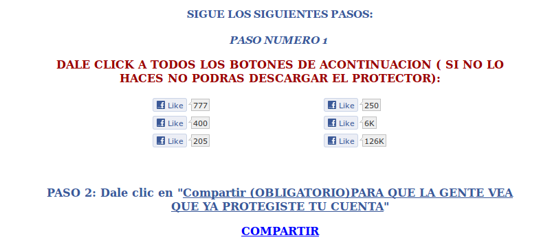 El sitio Portaltodo.org ha mostrado el código que viene en los botones que el sitio tufacebookseguro.tk pide que hagas click y por supuesto ninguno tiene nada que ver con mantener nuestra cuenta de Facebook segura.