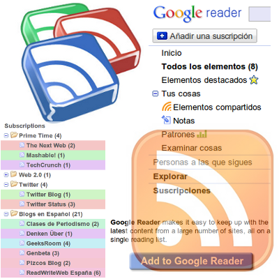 Si no sabes que es Google Reader haz click aqui.