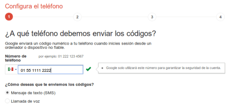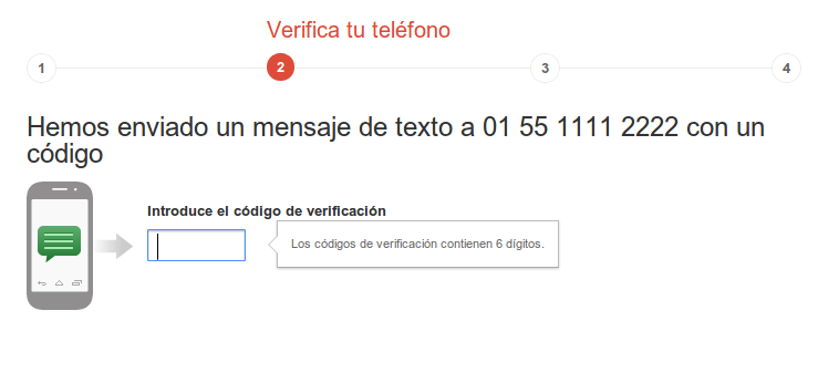 Lo primero que tenemos que hacer es verificar el teléfono a usar si no lo hemos dado de alta previamente. El formato 01 XX-XXXX-XXXX se ve raro pero funciona. No es necesario poner el 52 de pais.