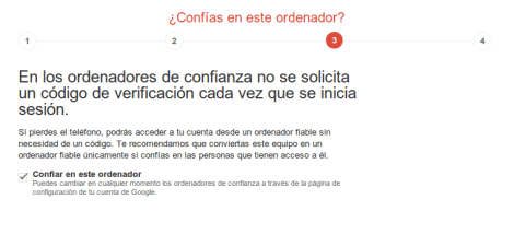 Tras esto se nos pedirá que reconozcamos ese equipo como un equipo de confianza que no requiere mas verificaciones posteriores. Esto es importante para nuestras máquinas de casa o laptops. En el caso de usar equipos ocasionalmente no debemos declararlos como equipos de confianza.