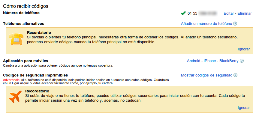Oscar: Está la app de teléfono y puedes imprimir un par de códigos en papel por si las dudas si no tienes manera de recibir SMS. Eso también me preocupaba pero la verdad es que hay opciones para darle la vuelta. Creo que la cosa no está tan latosa. Al menos por el momento. Supongo que tras unos mese veremos.