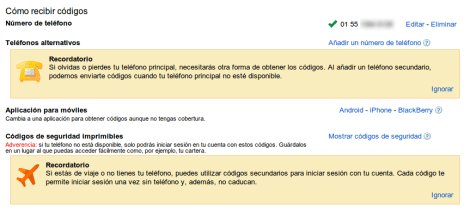 Adicionalmente se pueden dar de alta teléfonos adicionales, generar códigos por anticipado o descargar las apps móviles. Todas estas cosas simplifican el uso en caso de no tener un smartphone con servicio disponible.