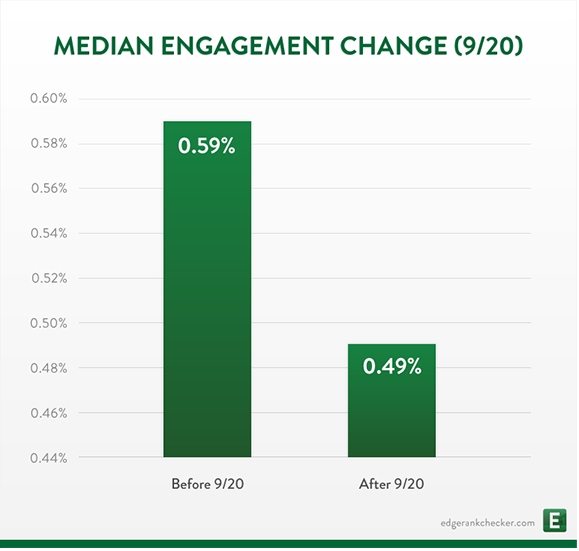 El alcance orgánico (la cantidad de personas que naturalmente ven las publicaciones de una página) fue recortado. Ahora se llega a menos personas. Se supone que esto es porque el algoritmo ahora optimiza para que el contenido llegue a las personas que mas factiblemente puedan interactuar con él. En estricta teoría estamos intercambiando cantidad de vistas por calidad de interacción. Al menos eso dicen los representantes oficiales de Facebook. Edgerank Checker, una aplicación muy fuerte en lo que a métricas de páginas en Facebook se refiere, presentó el siguiente estudio que puso números a lo que todos estábamos viendo y no deja duda de la situación: