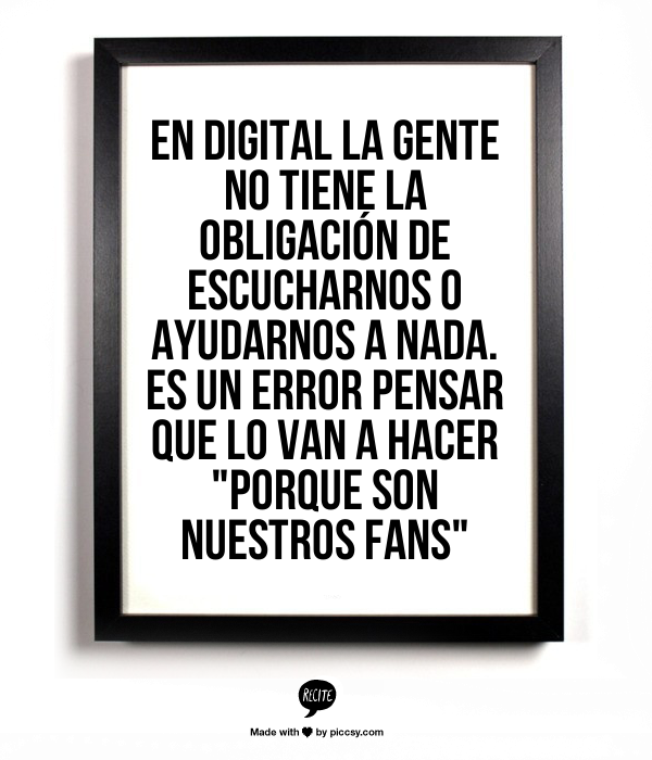 Nuestros seguidores/fans no son un equipo de marketing subcontratado que firmó con nosotros el momento que decidió interesarse en saber un poco más de una marca.