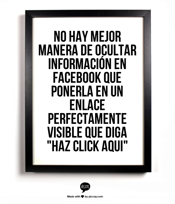 No he encontrado mejor manera de ocultar información en Facebook que ponerla en un enlace. Con eso automáticamente parece borrarse para los ojos de la gente.