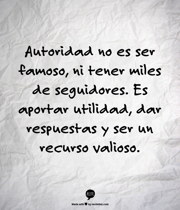 Esto es lo que significa ser una autoridad realmente. Si lo vemos así, me pregunto si podríamos voltear a ver a muchos tuitstars y bloggers y automáticamente ponerles la etiqueta de «Autoridad» tan fácilmente.