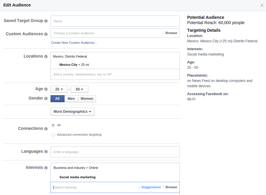 La primera hipótesis es poco probable, pero confirmar la segunda es posible. Vamos a hacer un pequeño ejemplo con los tres métodos para crear anuncios que tiene Facebook: Publicaciones Promocionadas, Ad Manager y Power Editor. Si es un cambio generalizado debería de reflejarse en todos.