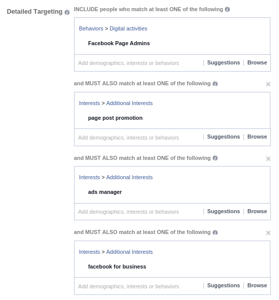 A pesar de su tremenda potencia, Facebook Ads tenía un problema serio en cuanto al manejo de intereses. Uno podía definir una segmentación en base a varios de ellos, y eso estaba muy bien. El problema es que esos intereses eran excluyentes, es decir: Si uno definía a un público por el Interés A, el Interés B y el Interés C, el público se constituía por la gente que tenía el Interés A, Ó el Interés B, Ó el Interés C. Esto era ideal si lo que queríamos era alcanzar a un público relativamente amplio, pero no daba la opción de ser tan precisos como hubiéramos deseado. Si queríamos llegar a la gente que tuviera los 3 intereses, esto resultaba imposible.