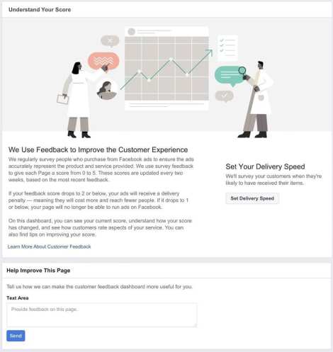 Aqui se confirma que la calificación para los anunciantes va de 0 a 5, pero lo realmente importante es que los clientes serán encuestados directamente por Facebook. Incluso un negocio puede indicar el tiempo de entrega aproximado para que sus clientes sean encuestados oportunamente. Este es un detalle interesante que parece decir que Facebook se está tomando en serio todo esto.